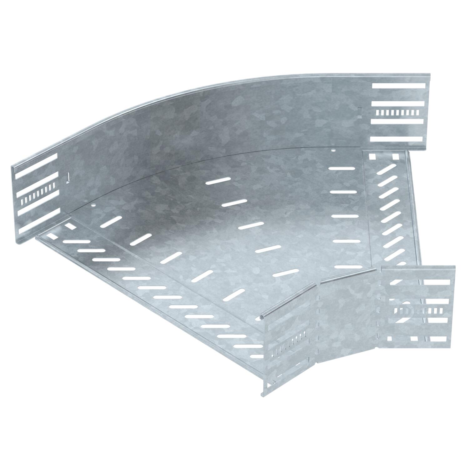 Descripción de productoCurva de 45° para establecer una derivación horizontal, accesorio para bandejas portacables encajables y atornillables con ala de 110 mm. Montaje sin tornillos con abrazaderas dobles o unión atornillada con tornillos redondos planos FRS y tuercas combinadas M6. De uso en interiores y exteriores. El material de fijación se debe pedir por separado.