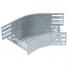 Descripción de productoCurva de 45° para establecer una derivación horizontal, accesorio para bandejas portacables encajables y atornillables con ala de 85 mm. Montaje sin tornillos con abrazaderas dobles o unión atornillada con tornillos redondos planos FRS y tuercas combinadas M6. De uso en interiores y exteriores. El material de fijación se debe pedir por separado.