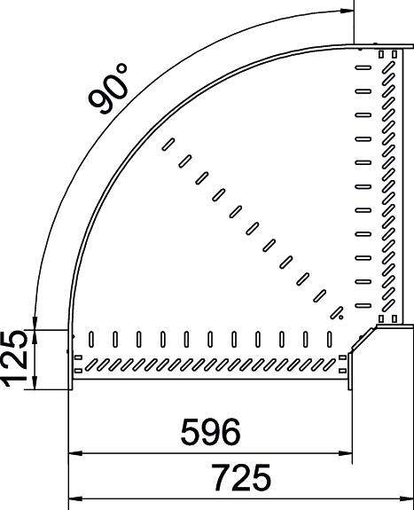 Descripción de productoCurva de 90° para establecer una derivación horizontal, accesorio para bandejas portacables encajables y atornillables con ala de 110 mm. Montaje sin tornillos con abrazaderas dobles o unión atornillada con tornillos redondos planos FRS y tuercas combinadas M6. De uso en interiores y exteriores. El material de fijación se debe pedir por separado.