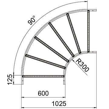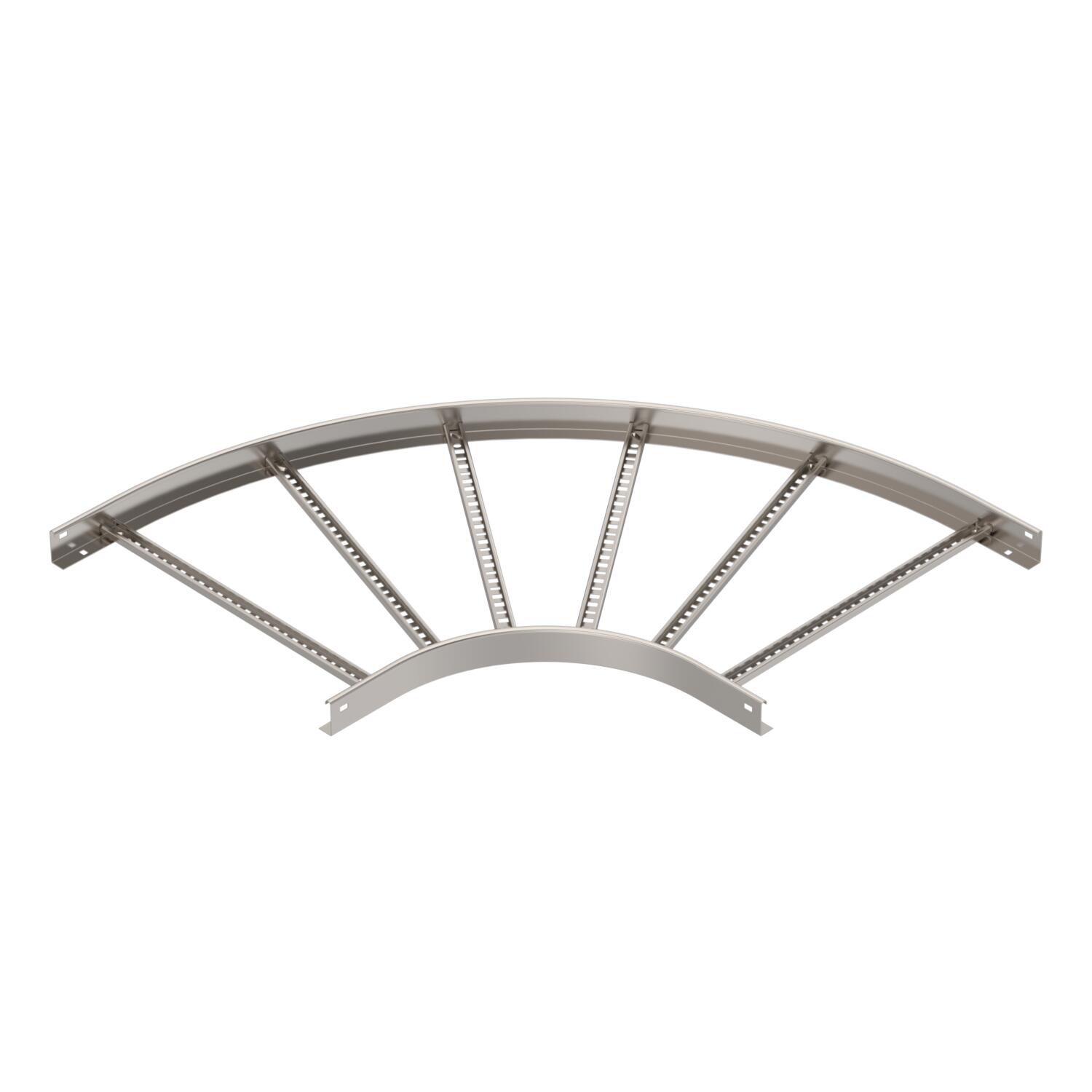 Descripción de productoCurva 90º, horizontal, con peldaño soldado para todas las bandejas de escalera de ala 60 mm.