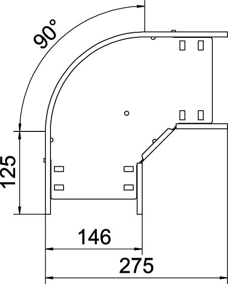 Descripción de productoCurva de 90° para establecer una derivación horizontal, accesorio para bandejas portacables encajables y atornillables con ala de 60 mm. Montaje sin tornillos con abrazaderas dobles o unión atornillada con tornillos redondos planos FRS y tuercas combinadas M6. De uso en interiores y exteriores. El material de fijación se debe pedir por separado.