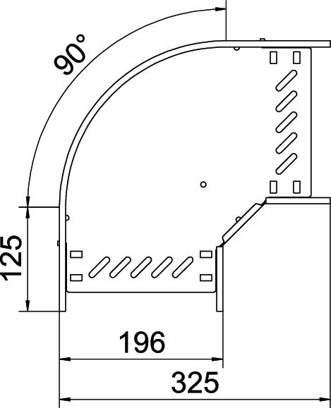Descripción de productoCurva de 90° para establecer una derivación horizontal, accesorio para bandejas portacables encajables y atornillables con ala de 60 mm. Montaje sin tornillos con abrazaderas dobles o unión atornillada con tornillos redondos planos FRS y tuercas combinadas M6. De uso en interiores y exteriores. El material de fijación se debe pedir por separado.