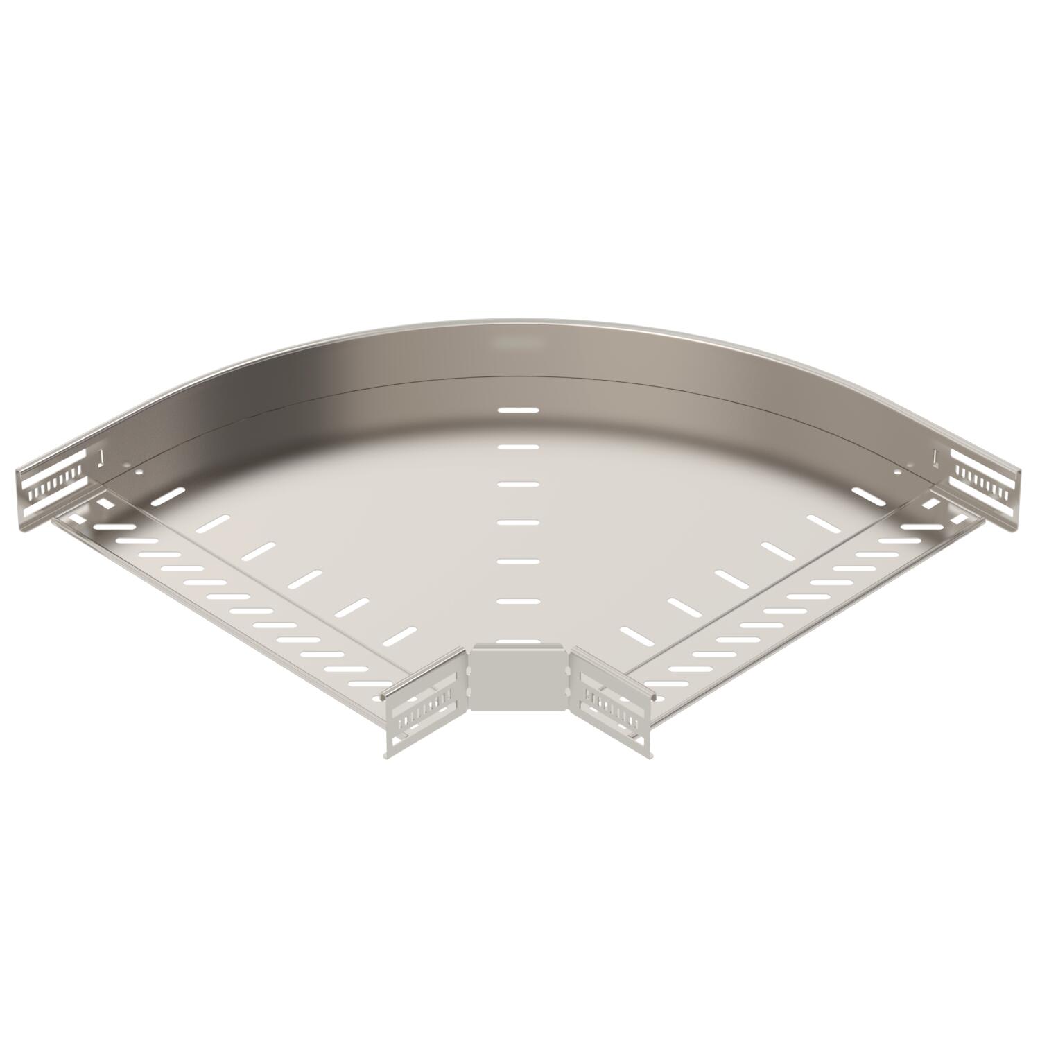 Descripción de productoCurva de 90° para establecer una derivación horizontal, accesorio para bandejas portacables encajables y atornillables con ala de 60 mm. Montaje sin tornillos con abrazaderas dobles o unión atornillada con tornillos redondos planos FRS y tuercas combinadas M6. De uso en interiores y exteriores. El material de fijación se debe pedir por separado.