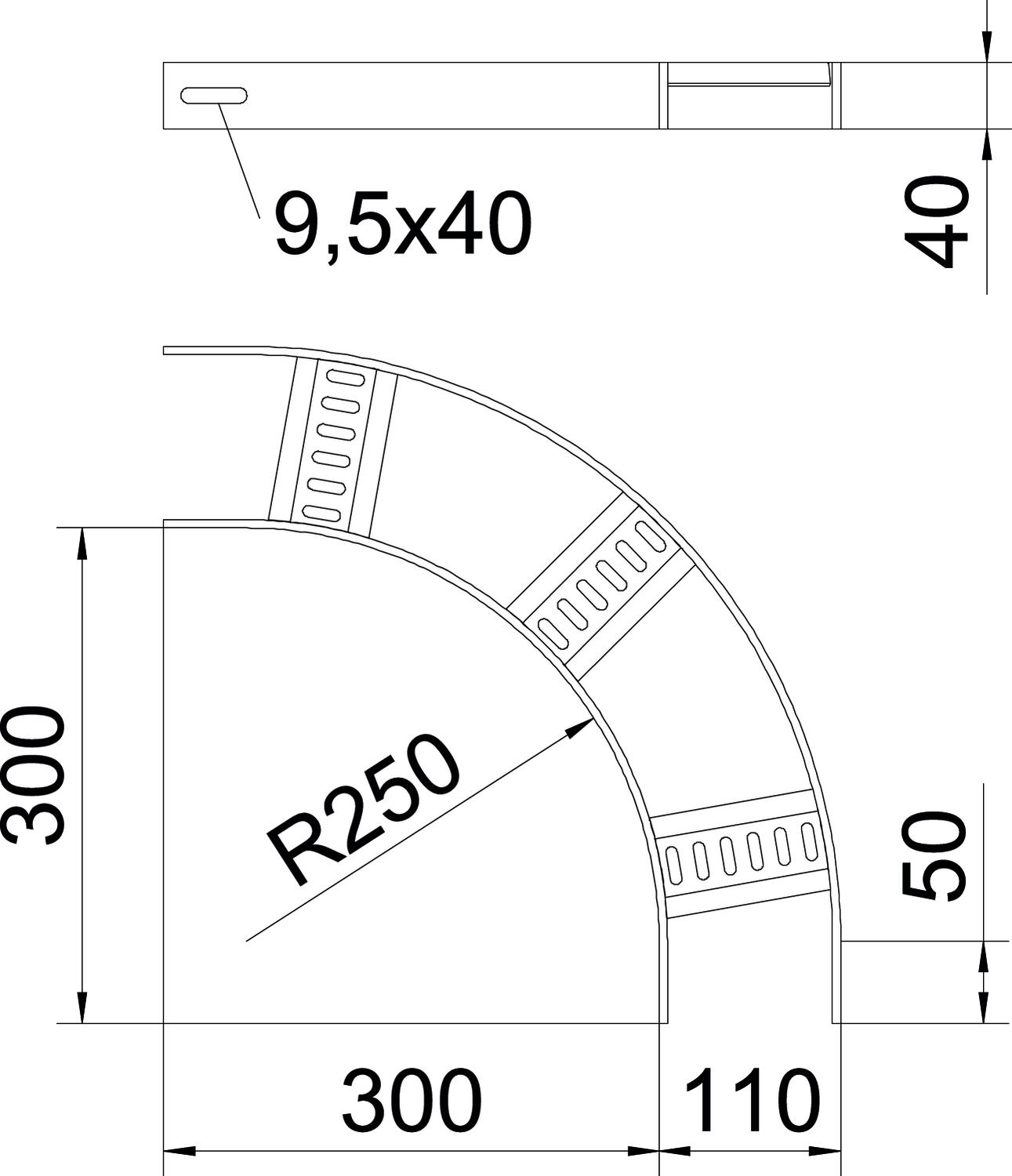 Descripción de productoCurva de 90° para bandeja de escalera para barcos tipo SL 62 con altura de ala de 40 mm con peldaños trapezoidales, soldados, perforados y abiertos hacia abajo.