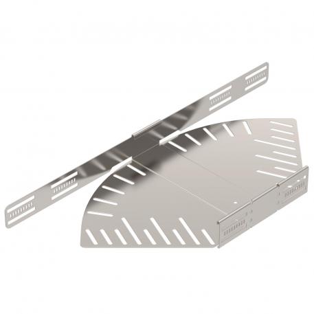 Descripción de productoCurva de ángulo regulable para establecer una derivación horizontal, accesorio para bandejas portacables encajables y atornillables con ala de 60 mm. Ángulo regulable de 0-90 °. Montaje sin tornillos con abrazaderas dobles o unión atornillada con tornillos redondos planos FRS y tuercas combinadas M6. De uso en interiores y exteriores. El material de fijación se debe pedir por separado.