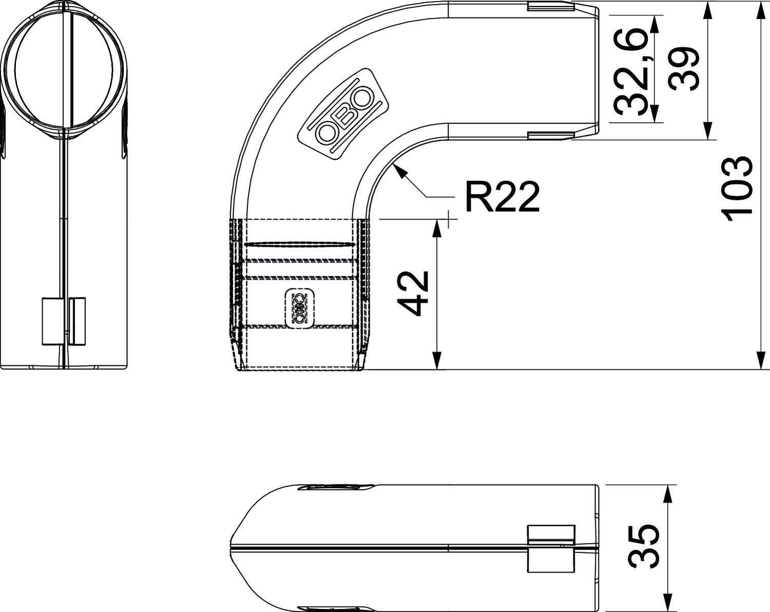 Descripción de productoPieza preformada para tubos de plástico para la instalación eléctrica para crear una curva de 90º. Adecuado para Quick-Pipe® o tubo corrugado. Cierre y apertura sin herramientas. Utilizable en el margen de temperatura de -25 ºC a +60 °C.