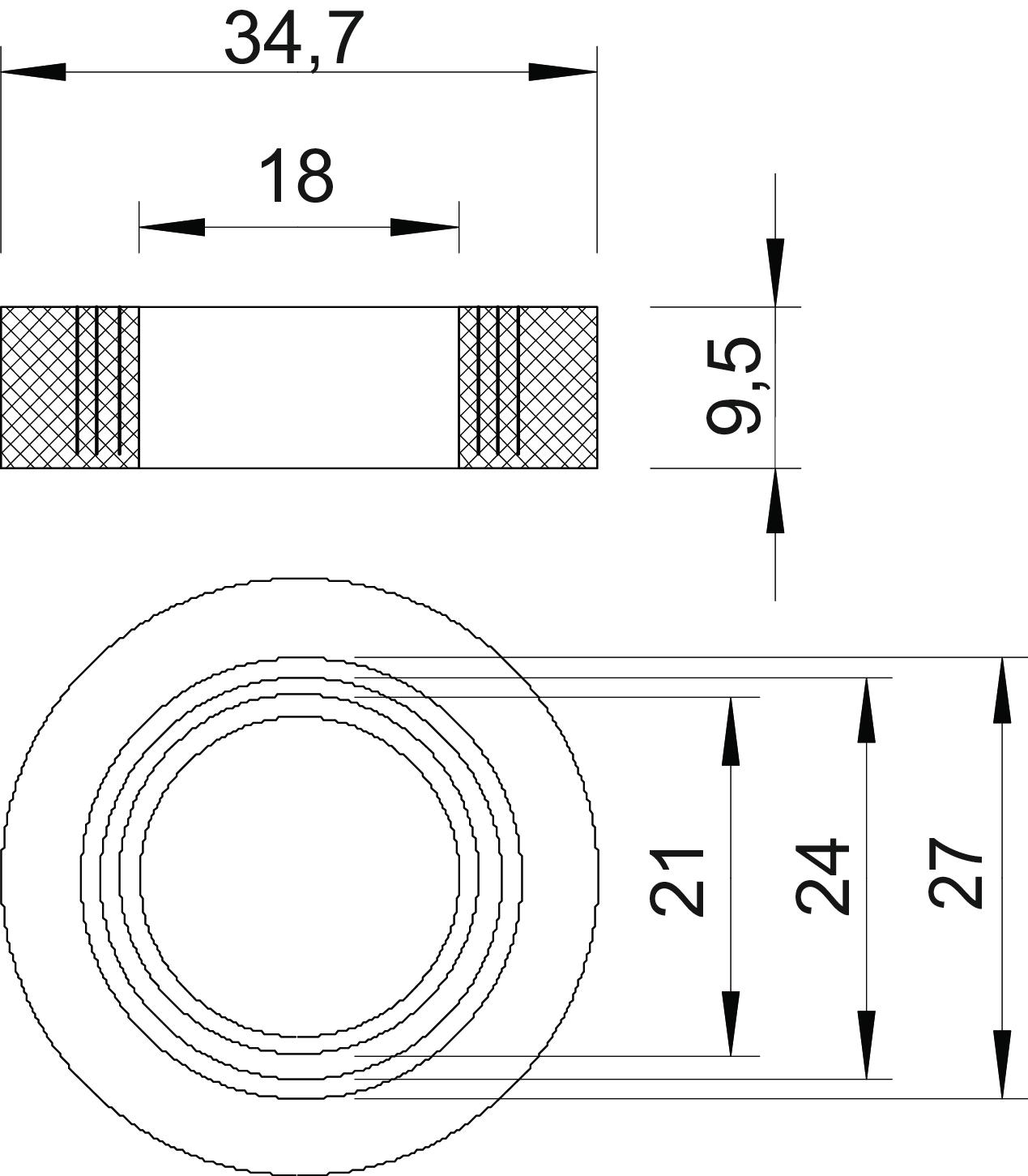 Color Negro Dimensión PG29 Dimension D4 24 mm Huella de CO2 (GWP) Cradle-to-Gate 0,0325 kg CO2e / 1 Unidad Material Mezcla de caucho Medida D1 18 mm Medida D2 34,7 mm Medida D3 21 mm Medida D5 27 mm Medida H 9,5 mm Sellado D máx. 27 mm Sellado D mín. 18 mm Tamaño M32 Tamaño Pg 29 - Todos los tipos