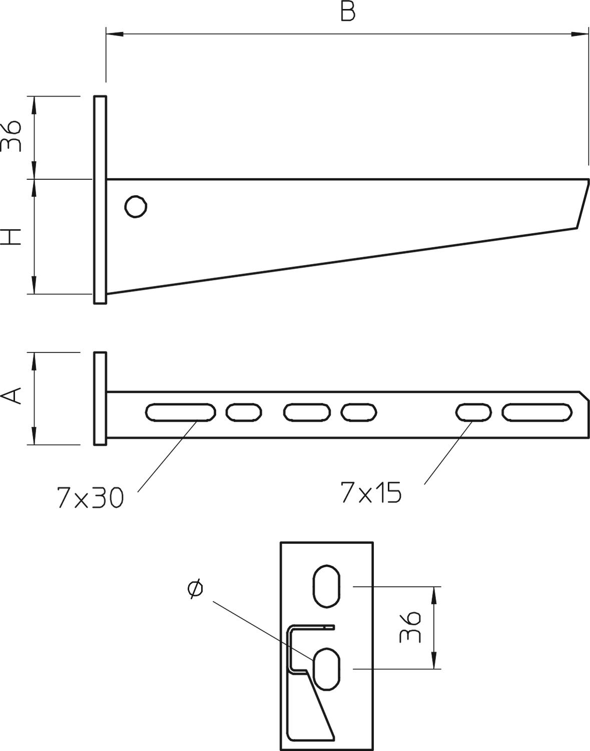 Descripción de productoEscuadra de pared/perfil con placa frontal soldada y dos agujeros de fijación.