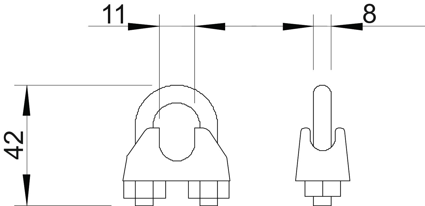 Dimensión 10mm Huella de CO2 (GWP) Cradle-to-Gate 0,1606 kg CO2e / 1 Unidad Material Acero Medida A 42 mm Medida B 11 mm Medida C 8 mm para diámetros de cable mín. 10 mm Superficie electrozincado Versión no aislado - Todos los tipos