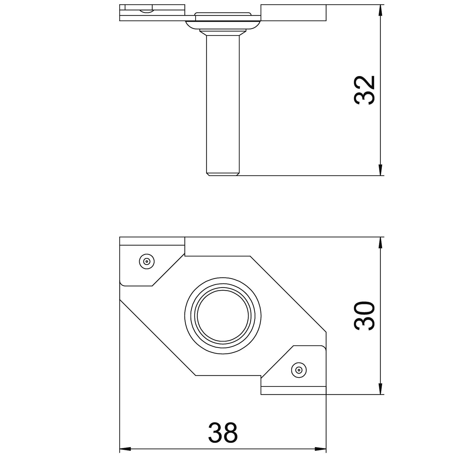 Altura 32 mm Ancho 30 mm Bisagra ajustable no Carga de fractura 0,22 kN Clase/componente de conexión Rosca Color zinc Dimensión M6x25mm Espesor brida F máx. 1,5 mm Espesor brida F mín. 1 mm Extremo de la bisagra no Longitud 38 mm Material Acero Medida H 32 mm Rosca M6x25 Rosca métrica 6 Superficie Lámina de cinc Tipo de fijación Embornar - Todos los tipos