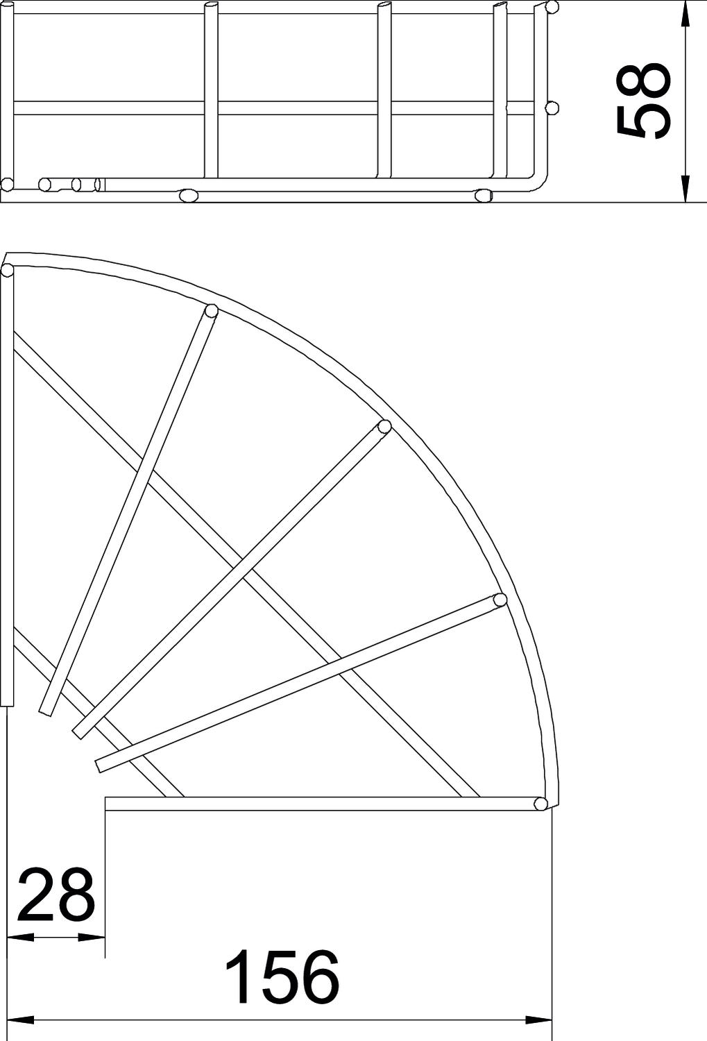 Descripción de productoCurva 90°, horizontal, para la bandejas de rejilla con una altura del ala de 55 mm.