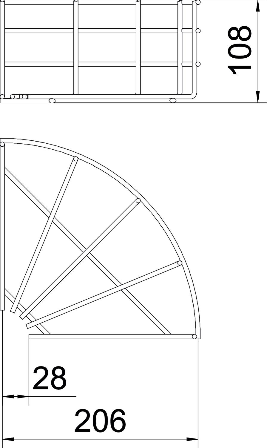 Descripción de productoCurva 90°, horizontal, para la bandejas de rejilla con una altura del ala de 105 mm.
