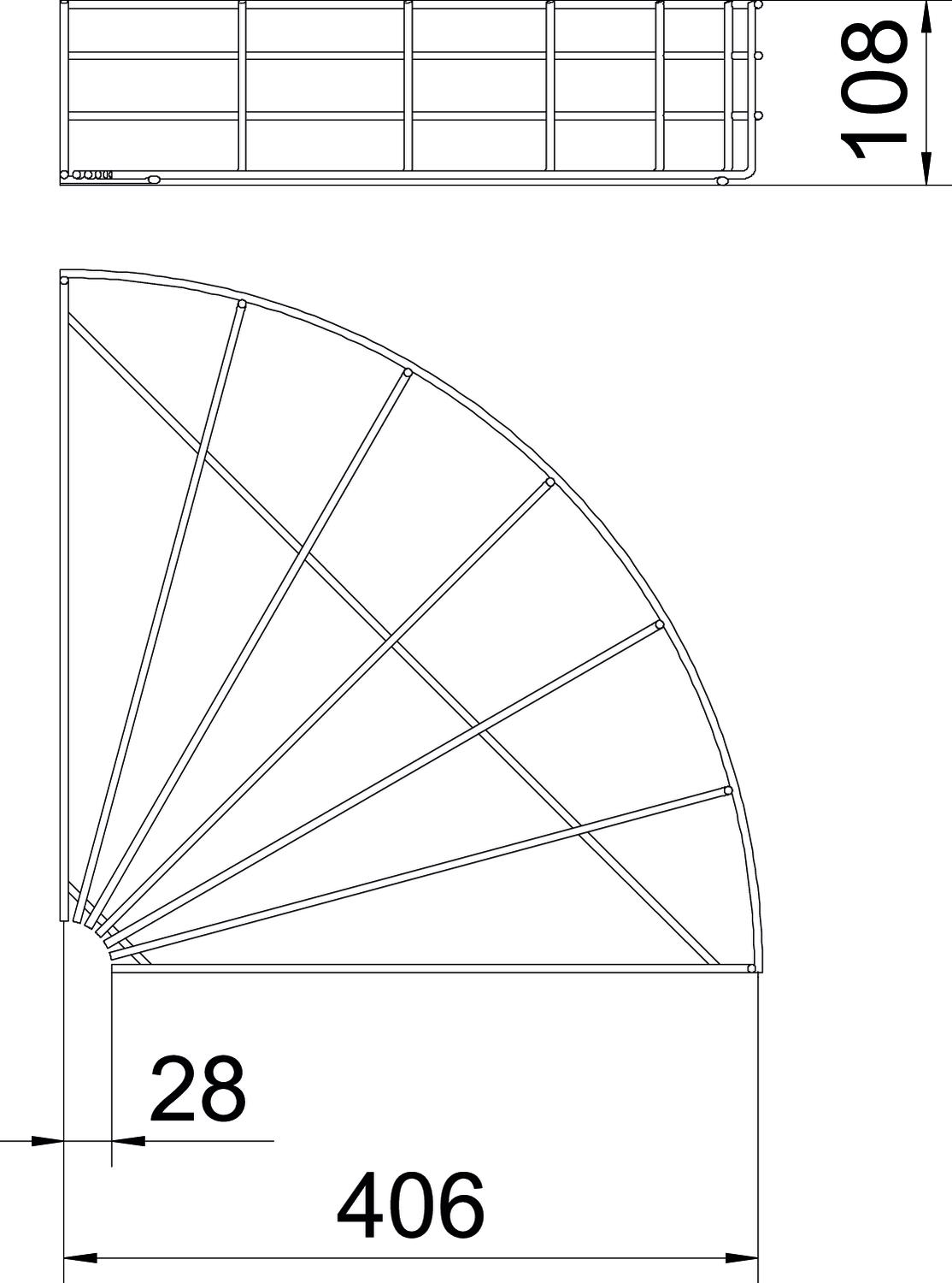Descripción de productoCurva 90°, horizontal, para la bandejas de rejilla con una altura del ala de 105 mm.