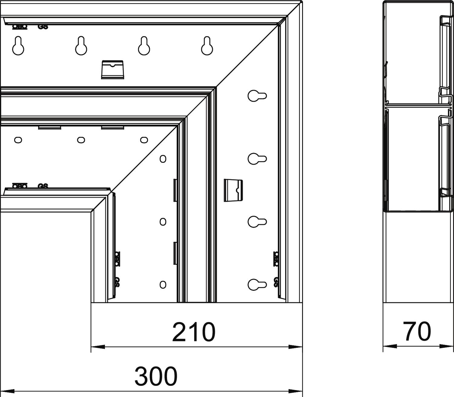 Altura 70 mm Ancho 210 mm Ancho de la parte superior 76,5 mm Ancho de la parte superior 2 76,5 mm Ángulo mín. 90 mm Cambio de dirección vertical descendente Clase de protección IP30 Color blanco puro; RAL 9010 Conector para canal no Dimensión 70x210x300 Grado de protección código IK IK10 Hoja protectora sí Huella de CO2 (GWP) Cradle-to-Gate 11,7893 kg CO2e / 1 Unidad Libre de halógenos sí Longitud 300 mm Material Acero Número de tapas 2 Para altura de canal 70 mm Para ancho de canal 210 mm Perforación de montaje en el suelo sí Rango de temperatura -25 °C Rango de temperatura máx. 60 °C Retenedor para cable no Simétrico no Tipo de montaje de las tapas interior Tratamiento antibacteriano no Versión Zócalo - Todos los tipos