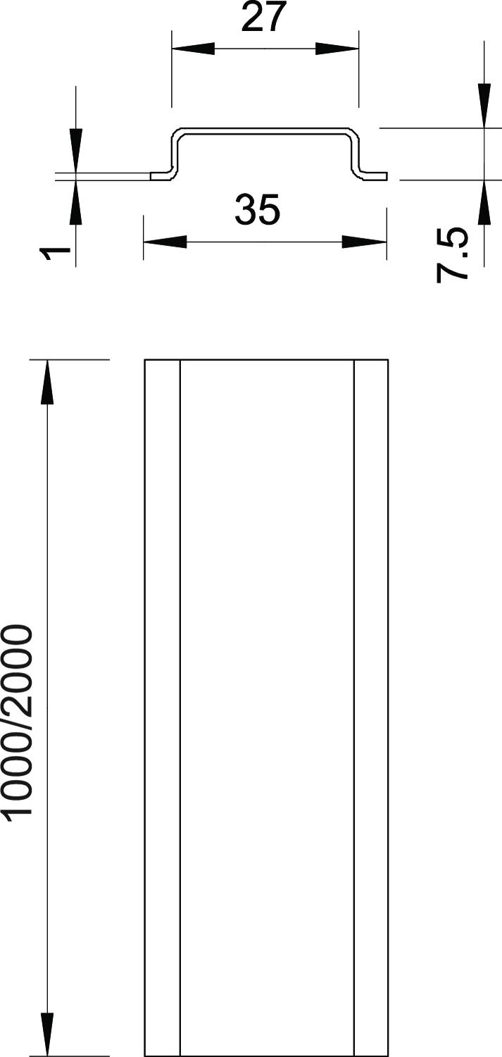 Altura 7,5 mm Ancho 35 mm Dimensión 2000x35x7,5 Forma del orificio (ETIM) Sin Grosor del material 1 mm Huella de CO2 (GWP) Cradle-to-Gate 0,7825 kg CO2e / 1 Metro Longitud 2000 mm Material Acero Modelo de carriles Carril soporte DIN EN 60715 Paquete 50 m Superficie Galvanizado en banda Versión ciego - Todos los tipos