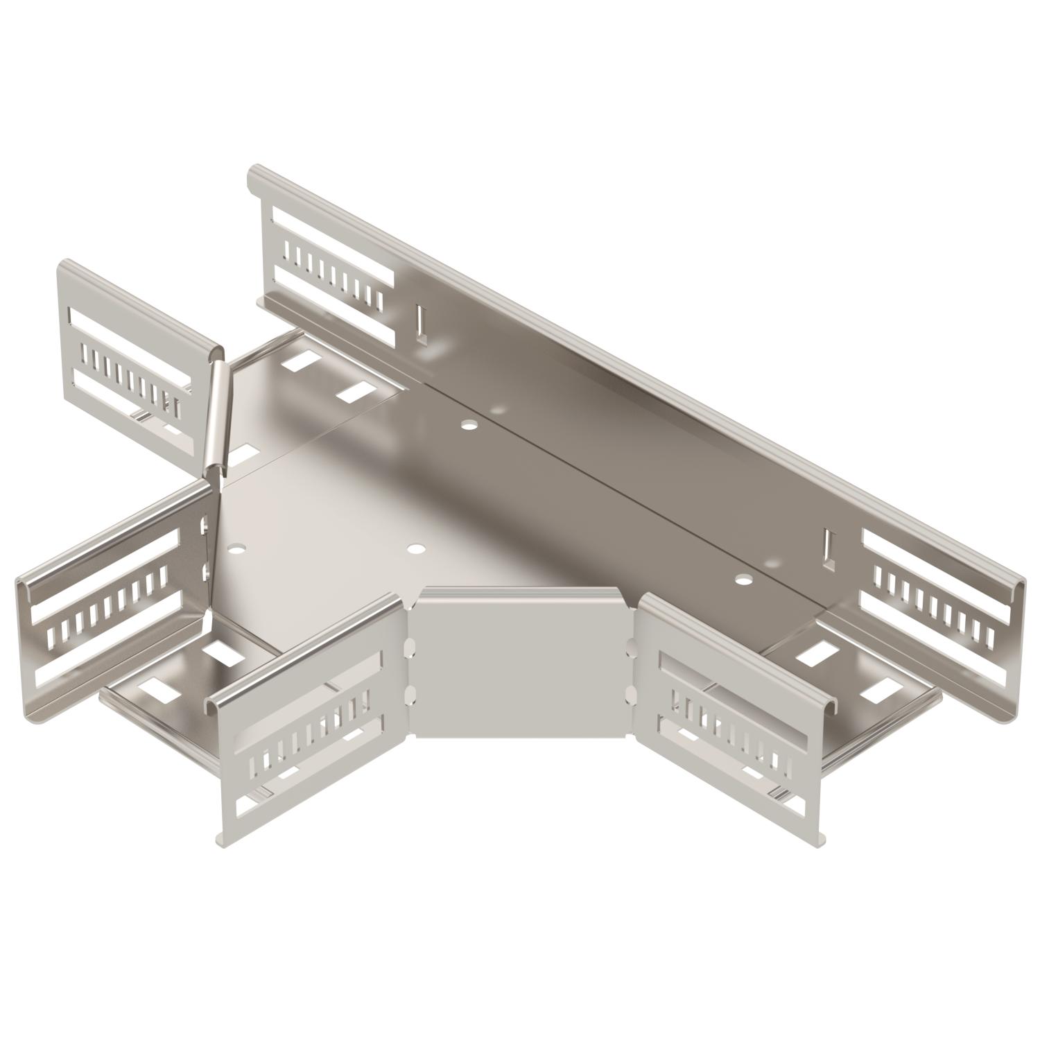 Descripción de productoPieza en T para establecer una derivación horizontal, accesorio para bandejas portacables encajables y atornillables con ala de 60 mm. Montaje sin tornillos con abrazaderas dobles o unión atornillada con tornillos redondos planos FRS y tuercas combinadas M6. De uso en interiores y exteriores. El material de fijación se debe pedir por separado.