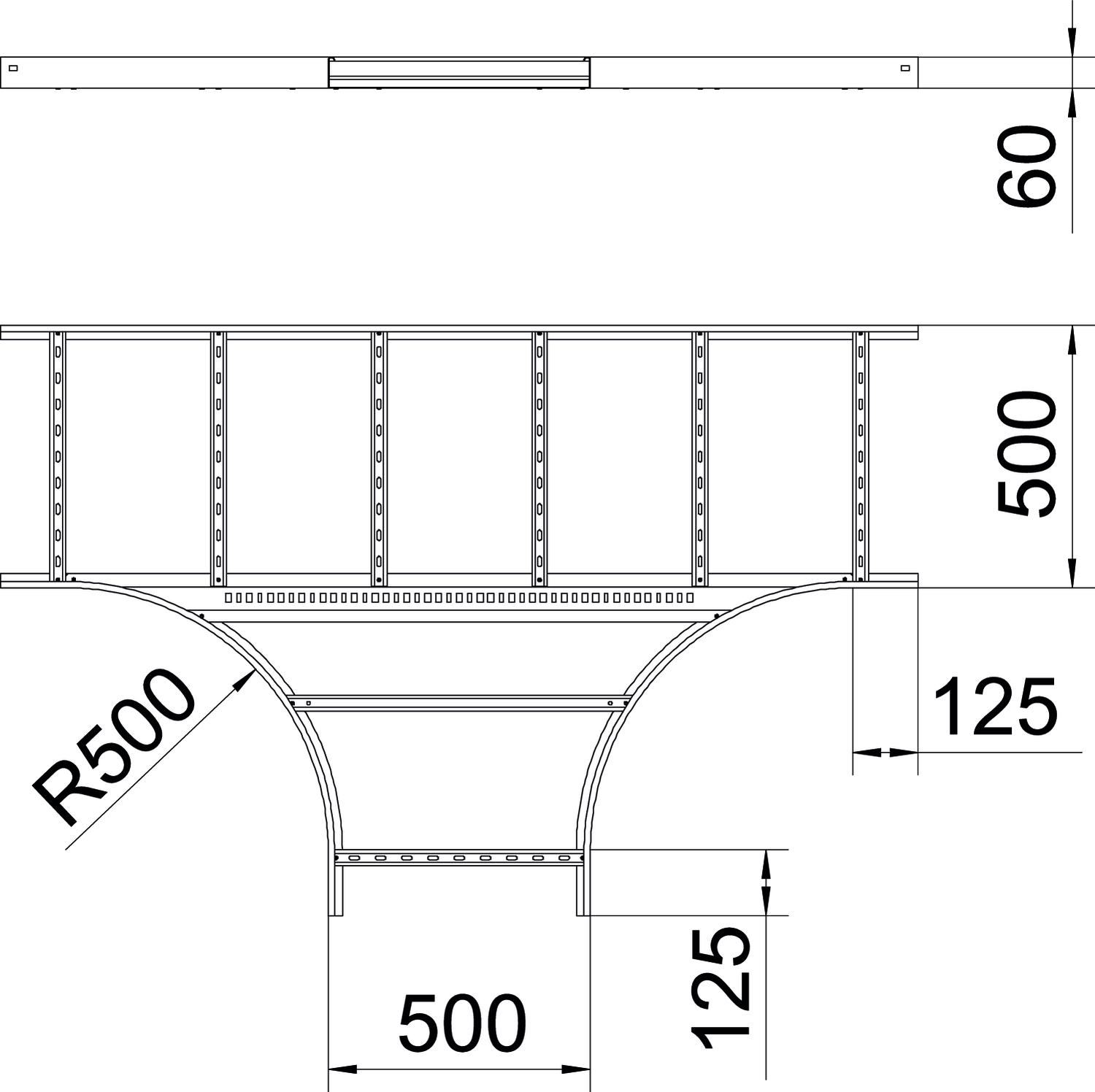 Descripción de productoPieza en T, horizontal, para todas las bandejas de escalera con altura de ala de 60 mm.