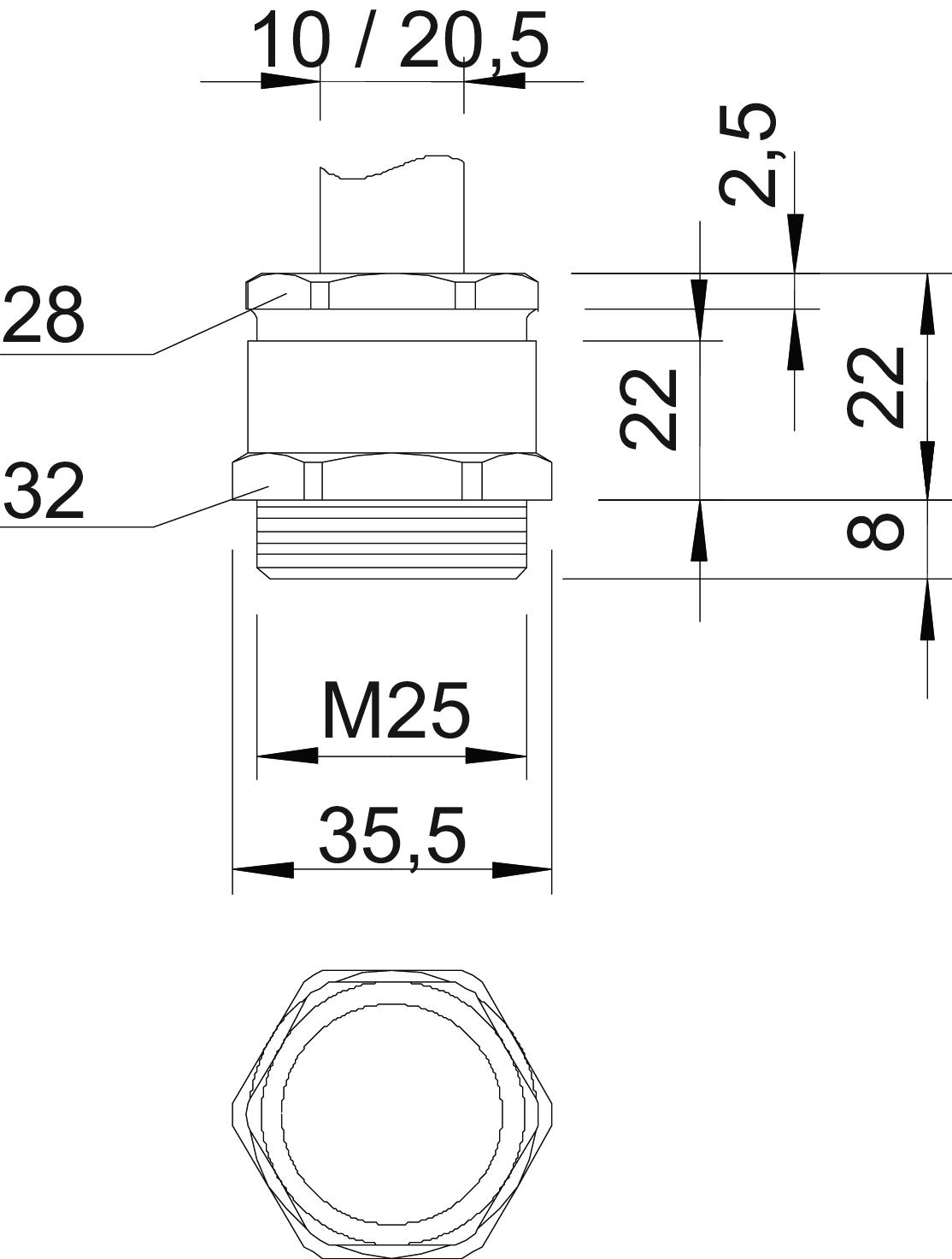 A prueba de impactos no Ancho de llave 1 32 mm Ancho de llave 2 28 mm Clase de protección IP65 Con contratuerca no Dimensión M25 Empaquetadura múltiple no Huella de CO2 (GWP) Cradle-to-Gate 0,1137 kg CO2e / 1 Unidad Largo de la rosca 8 mm Libre de halógenos no Material Latón Medida L máx. 22 mm Medida E 35,5 mm Medida L 22 mm Medida L1 8 mm Medida L2 22 mm Medida L3 2,5 mm Para zona Ex Sin Posibilidad de descarga de tracción no Protección de torsión no protegido contra explosiones no Racor de cable plano no Reforzado con fibra de vidrio no Rosca M25 x 1,5 Sellado D máx. 20,5 mm Sellado D mín. 10 mm Superficie niquelado Tipo de junta Disco obturador separable Tipo de rosca Métrico - Todos los tipos