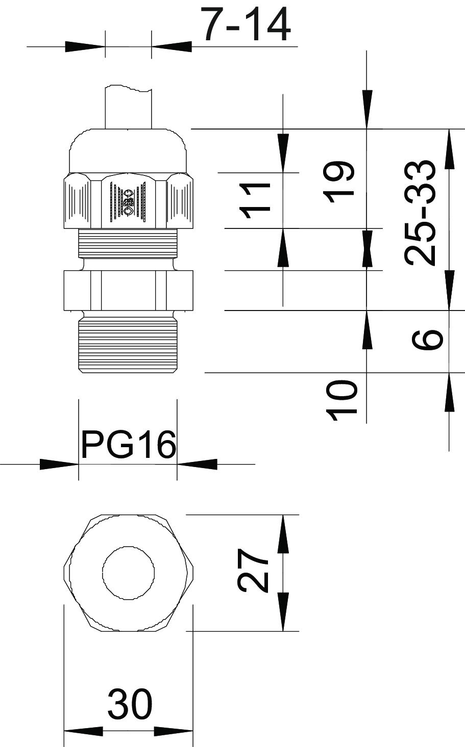 A prueba de impactos no Ancho de llave 27 Clase de protección IP68 Color blanco puro; RAL 9010 Con contratuerca no Dimensión PG16 Empaquetadura múltiple no Huella de CO2 (GWP) Cradle-to-Gate 0,0619 kg CO2e / 1 Unidad Largo de la rosca 10 mm Libre de halógenos sí Material Poliamida Medida L máx. 33 mm Medida L mín. 25 mm Medida E 30 mm Medida L1 10 mm Medida L2 6 mm Medida L3 19 mm Medida L4 11 mm Par de giro inestable 3,67 Nm Para zona Ex Sin Para zona Ex con gas Sin Para zona Ex con polvo en suspensión Sin Paso de rosca 1,41 mm Posibilidad de descarga de tracción sí Prensaestopas divisibles no Protección de torsión no protegido contra explosiones no Racor de cable plano no Rango de temperatura -20 °C Rango de temperatura máx. 65 °C Reforzado con fibra de vidrio no Rosca Pg 16 Sellado D máx. 14 mm Sellado D mín. 7 mm Tipo de junta Junta tórica Tipo de rosca PG Versión Recto - Todos los tipos