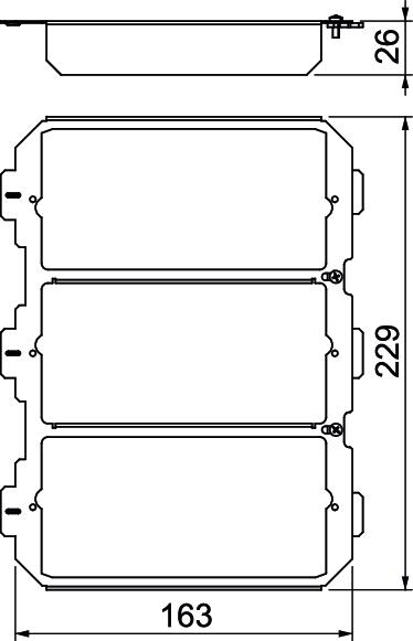 Altura 26 mm Ancho 163 mm Huella de CO2 (GWP) Cradle-to-Gate 1,113 kg CO2e / 1 Unidad Longitud 229 mm Material Acero Número de aberturas simples 3 Número de dispositivos instalables 6 Superficie Galvanizado en banda - Todos los tipos
