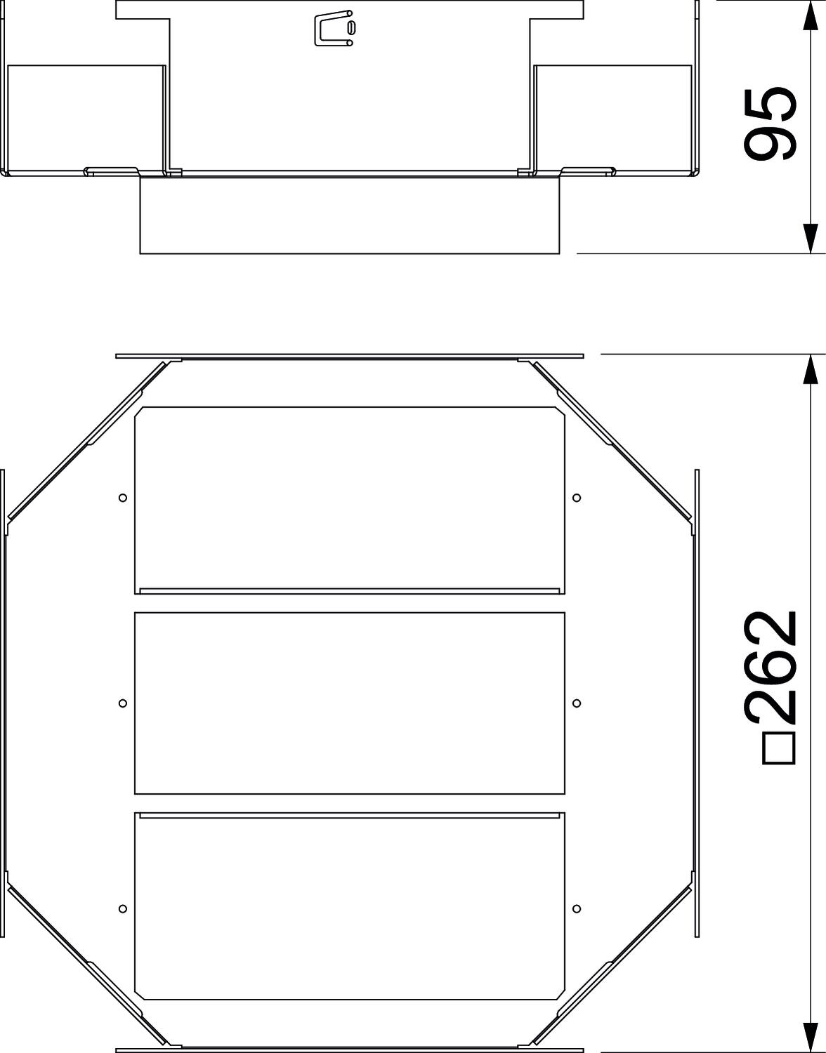 Descripción de productoSoporte de montaje para alojar 3 tapas APMT5 que sirven para el montaje de equipos de instalación del tipo British Standard debajo de marcos en cajas de derivación y de registro bajo suelo UZD250-3.