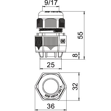 A prueba de impactos no Ancho de llave 32 Clase de protección IP66 Color Gris claro, RAL 7035 Con contratuerca no Connection method to the housing Click fastening Dimensión Ø25 Empaquetadura múltiple no Libre de halógenos sí Material Poliamida Medida L máx. 35 mm Medida L mín. 26 mm Medida E 36 mm Par de giro inestable 5 Nm para espesor de pared máx. 3 mm para espesor de pared mín. 1 mm Para zona Ex Sin Para zona Ex con gas Sin Para zona Ex con polvo en suspensión Sin Posibilidad de descarga de tracción sí Prensaestopas divisibles no Protección de torsión no protegido contra explosiones no Racor de cable plano no Rango de temperatura -20 °C Rango de temperatura máx. 65 °C Reforzado con fibra de vidrio no Sellado D máx. 17 mm Sellado D mín. 9 mm Tipo de junta Junta tórica Versión Recto - Todos los tipos