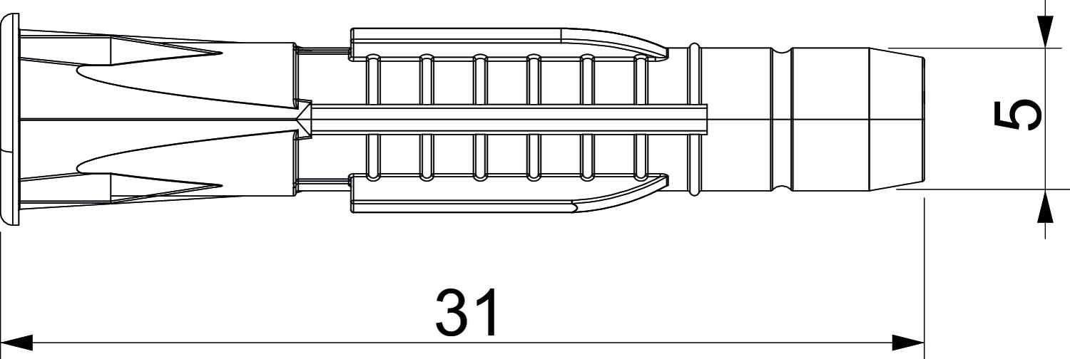 Descripción de productoTambién se puede utilizar como taco para orificios huecos, posee un collarín para evitar que se deslice hacia dentro. Las 3 aletas que tiene absorben el par de giro.