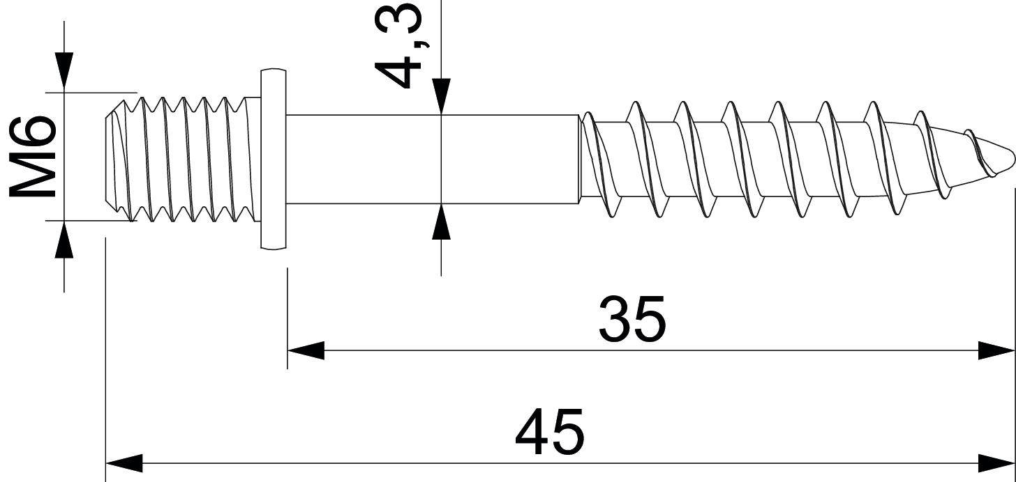 De doble vía no Diámetro 4,3 mm Diámetro del vástago 4,3 mm Dimensión M6x35mm endurecido no Forma de la cabeza external thread G M6 mm Huella de CO2 (GWP) Cradle-to-Gate 0,0107 kg CO2e / 1 Unidad Longitud 35 mm Material Acero Medida D 4,3 mm Medida L 45 mm Medida L1 35 mm Sistema roscado Otros Superficie electrozincado - Todos los tipos
