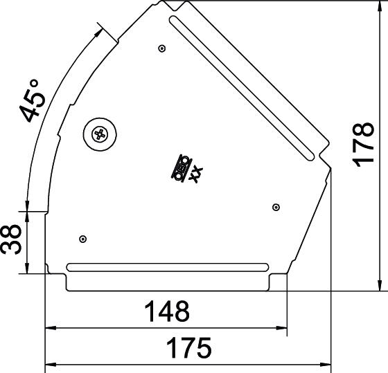 Descripción de productoTapa para pieza moldeada de curva de 45° para bandejas portacables encajables y atornillables en interiores y exteriores, para proteger los cables frente a daños y suciedad. Sujeción mediante pestillo giratorio premontado y apoyo de la tapa de tramo. Apto para todas las alturas de ala