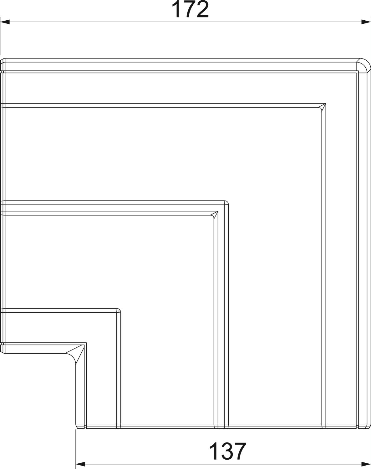 Altura 55,5 mm Ancho 137 mm Ángulo máx. 90 mm Ángulo mín. 90 mm Cambio de dirección vertical ascendente/descendente Clase de protección IP10 Color Gris claro, RAL 7035 Conector para canal no Dimensión 172x172x56 Grado de protección código IK IK08 Hoja protectora no Huella de CO2 (GWP) Cradle-to-Gate 0,8504 kg CO2e / 1 Unidad Libre de halógenos sí Longitud 172 mm Material Policarbonato/acrilonitrilo-butadieno-estireno Número de tapas 1 Para altura de canal 53 mm Para ancho de canal 130 mm Perforación de montaje en el suelo no Rango de temperatura -15 °C Rango de temperatura máx. 60 °C Retenedor para cable no Simétrico sí Tipo de montaje de las tapas general Tratamiento antibacteriano no Versión Pieza cobertora - Todos los tipos