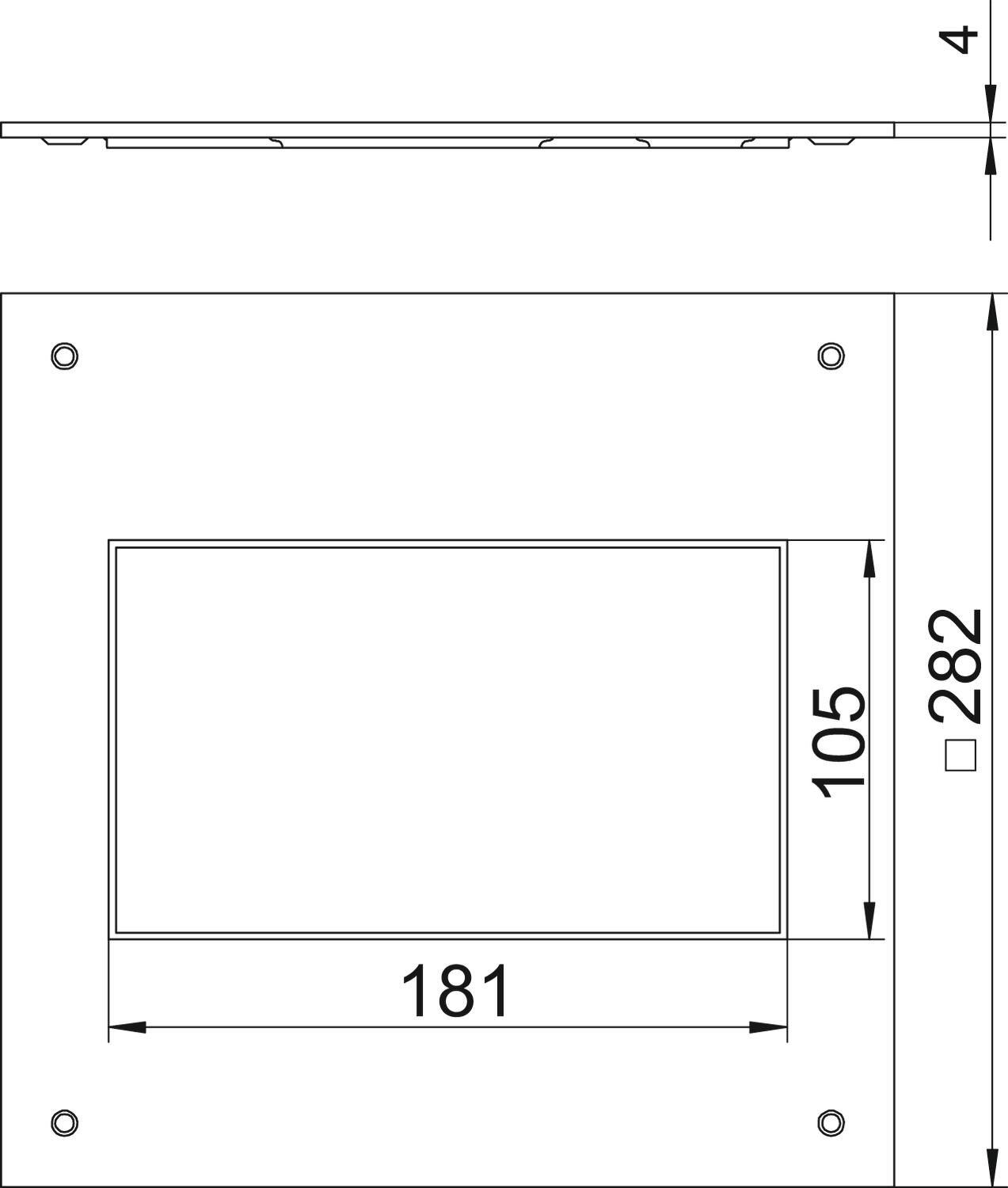 Abertura de montaje Rectangular Adecuado para canalización bajo pavimento sí Adecuado para canalización cerrada a ras de pavimento no Ancho 282 mm Ancho de canal máx. 250 mm Ancho de canal mín. 190 mm Cuidados del suelo seco Dimensión 282x282x4 Grosor del material 4 mm Huella de CO2 (GWP) Cradle-to-Gate 5,6054 kg CO2e / 1 Unidad Longitud 282 mm Material Acero Medida a 105 mm Medida A 282 mm Medida b 181 mm Modelo para carga pesada no Orificio para la instalación de caja sobre el pavimento no Posibilidad de instalar una junta no Superficie Galvanizado en banda Tamaño nominal 250 mm Tamaño nominal para unidades portamecanismos 2 Tapa abertura de montaje sí - Todos los tipos