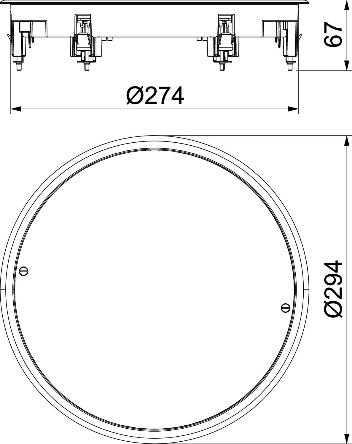 Descripción de productoMarco y tapa ciega para tapar una abertura de montaje redonda de tamaño R7 en sistemas de canalización así como en suelos técnicos y huecos. Con garras de fijación universal.