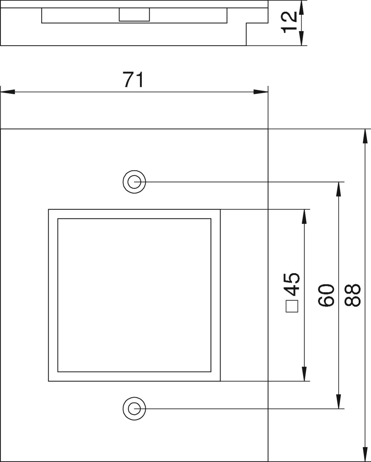Descripción de productoTapeta con troquel rectangular para un mecanismo Modul 45, para montar en la cara lateral mayor de la T12L (ocupa 1/4 cara) o en la cara lateral menor de T12L (ocupa 1/2 cara).