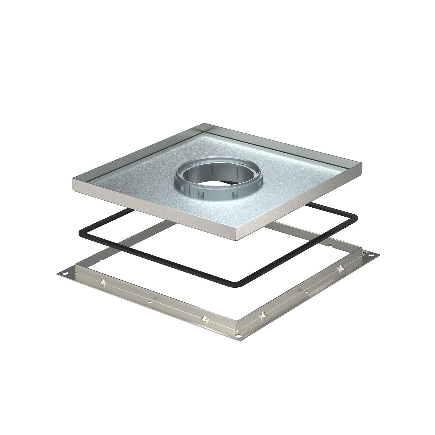 Descripción de productoCaja de marco para tubo, para UZD250-3, para el montaje de sistemas de instalación en suelos que requieren limpieza en seco o con agua en zonas interiores. El tubo no viene incluido.
