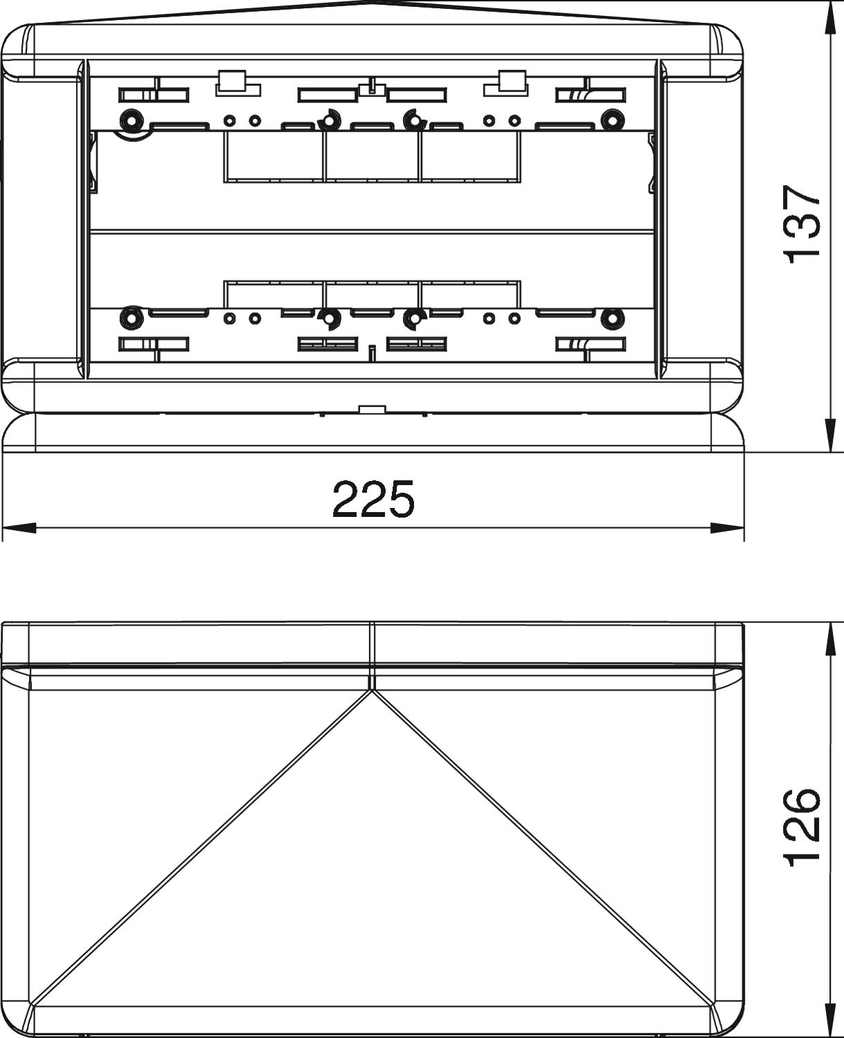 Altura 137 mm Ancho 126 mm Apropiado para limpieza con agua sí Apropiado para material estándar de interruptor sí Color negro grafito; RAL 9011 Dimensión 225x125x125 Huella de CO2 (GWP) Cradle-to-Gate 2,3745 kg CO2e / 1 Unidad Longitud 225 mm Material Poliamida Número de dispositivos instalables 4 Número de dispositivos instalables en la parte delantera 2 - Todos los tipos