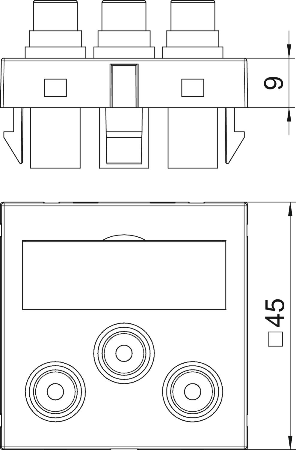 Descripción de productoSoporte multimedia con tres conectores cinch para vídeo, salida recta de cable, con campo identificativo, tres conectores cinch (RCA) con conexión por soldadura, código cromático rojo/verde/azul. Placa de soporte con enganche, apropiada para el montaje vertical y horizontal en el entorno del sistema.