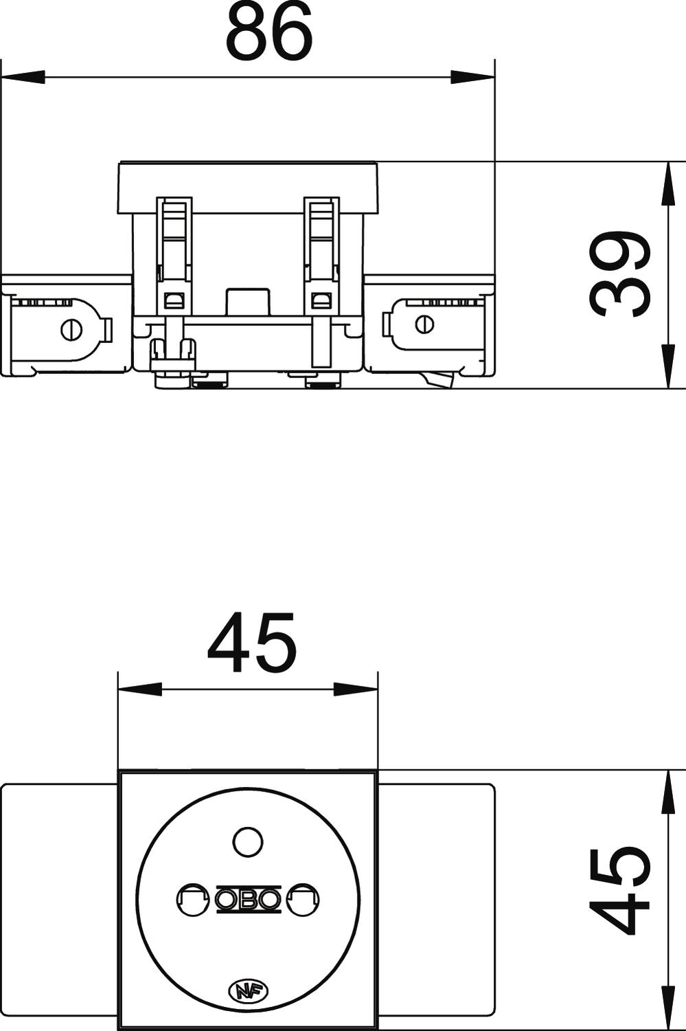 Descripción de productoToma eléctrica con clavija de toma a tierra con conexión lateral simple, 0°, con protección elevada contra rozamiento, con bornes de enchufes, de 2 polos, 16 A, 250 V~, con bornes de unión según IEC 60884-1, adecuada para el montaje en sistemas de canal portamecanismos Rapid 45.