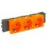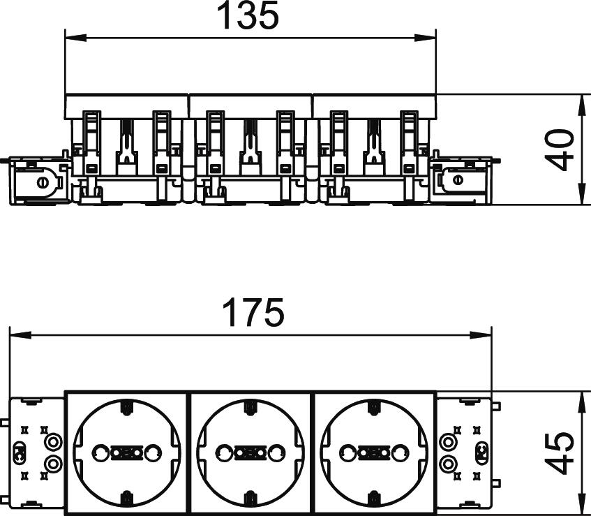 Descripción de productoToma de corriente con toma a tierra con conexión lateral triple, 0°, con protección elevada contra rozamiento, con bornes de enchufe, de 2 polos, 16 A, 250 V~, con bornes de unión según IEC 60884-1, adecuada para el montaje en sistemas de canal portamecanismos Rapid 45.