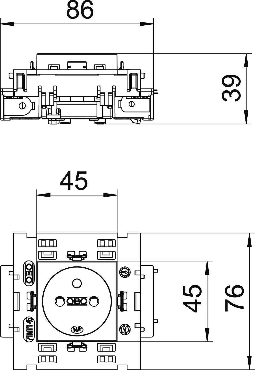 Descripción de productoToma de corriente con clavija de toma a tierra con conexión lateral simple, 0°, con protección elevada contra rozamiento, con bornes de enchufes, de 2 polos, 16 A, 250 V~, con bornes de unión según IEC 60884-1, adecuada para el montaje en sistemas de canal portamecanismos Rapid 80.