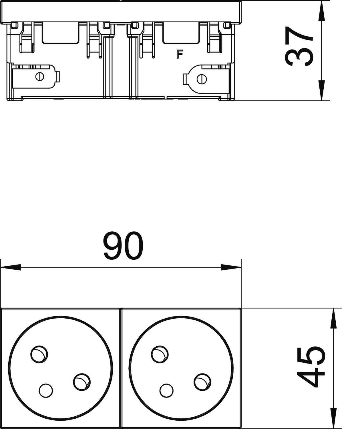 Descripción de productoToma de corriente con clavija de puesta a tierra con conexión lateral doble, 33°, con protección elevada contra rozamiento, con bornes de enchufes, de 2 polos, 16 A 250 V~, con bornes de unión según IEC 60884-1.