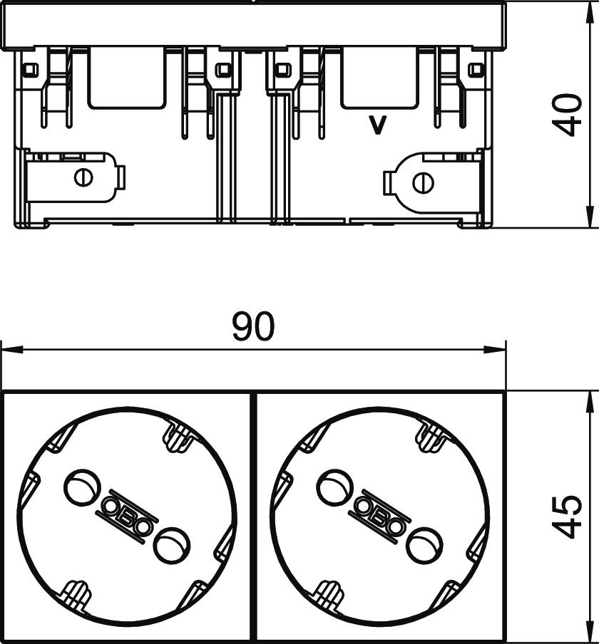 Descripción de productoToma eléctrica doble, 33°, con puesta a tierra y con protección para niños, 2 polos,16 A, 250 V~, con bornes de unión según IEC 60884-1.