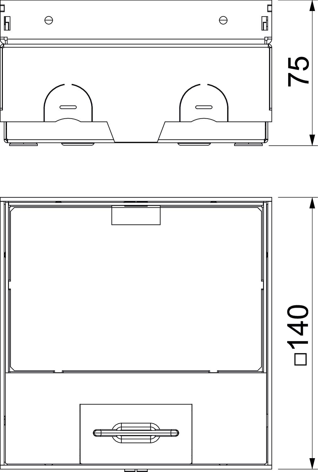 Caja vacía para un equipo de instalación Modul 45® y una toma de datos. Cerrado en el estado de suministro con una placa ciega.
