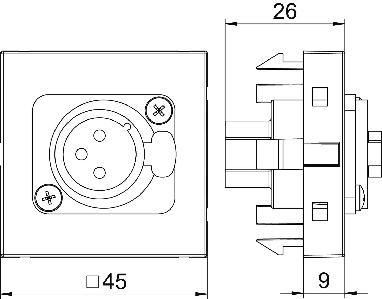 Descripción de productoSoporte multimedia con un conector XLR, salida recta de cable, sin campo identificativo, conector XLR de 3 polos con conexión por tornillo. Placa de soporte con enganche, adecuada para el montaje vertical y horizontal en el entorno del sistema.