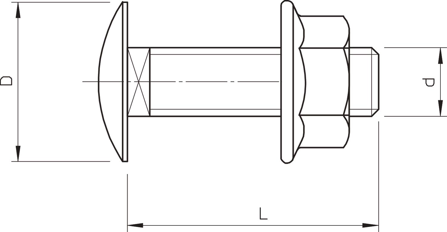 Descripción de productoTornillo de cabeza alomada con pieza de cuatro cantos y tuerca multiuso.