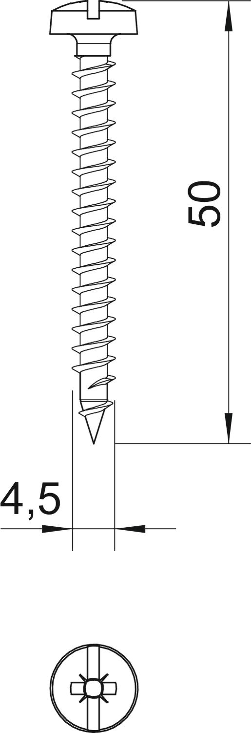 De doble vía sí Diámetro de la cabeza 8,2 mm Dimensión 4,5x50mm endurecido sí Forma de la cabeza Tornillo de anclaje con cabeza redonda Grosor 4,5 mm Longitud 50 mm Material Acero Medida D 4,5 mm Medida L 50 mm Sistema roscado Ranura combinada Superficie electrozincado - Todos los tipos