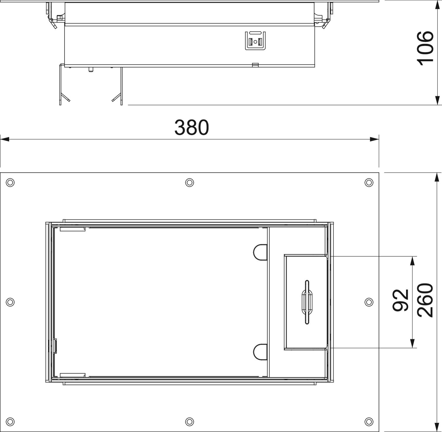 Altura 106 mm Ancho 260 mm Espesor del revestimiento del suelo 15 mm Huella de CO2 (GWP) Cradle-to-Gate 21,9803 kg CO2e / 1 Unidad Longitud 380 mm Material Acero inoxidable 1.4301 Modelo de salida de cable Salida de cable giratoria Número de cajas portamecanismos 4 Número de dispositivos instalables 8 - Todos los tipos