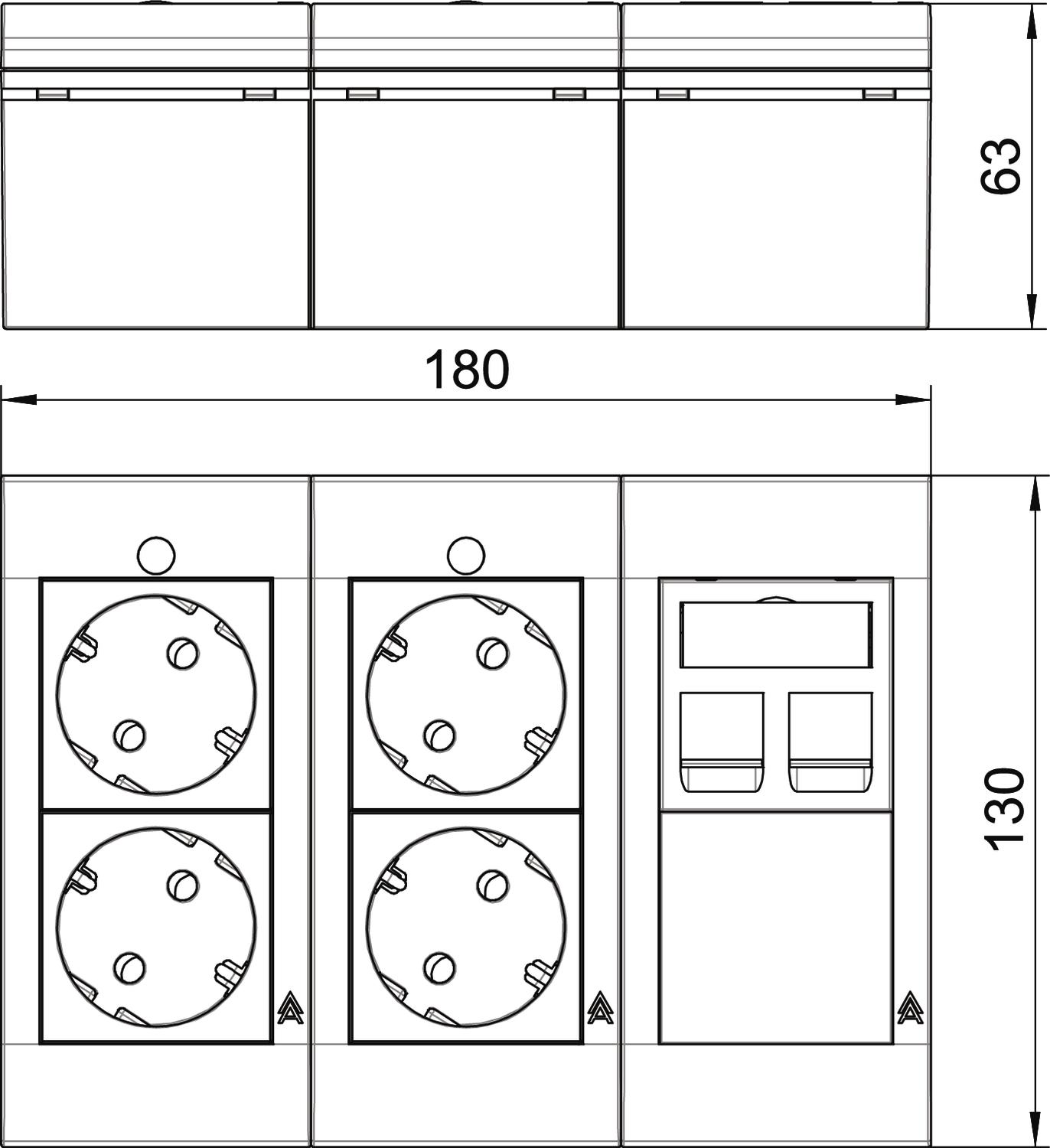 Descripción de productoUnidad de conexión preconfeccionada, carcasa Modalnet triple, apropiada para una instalación sobre superficie o en pared hueca.