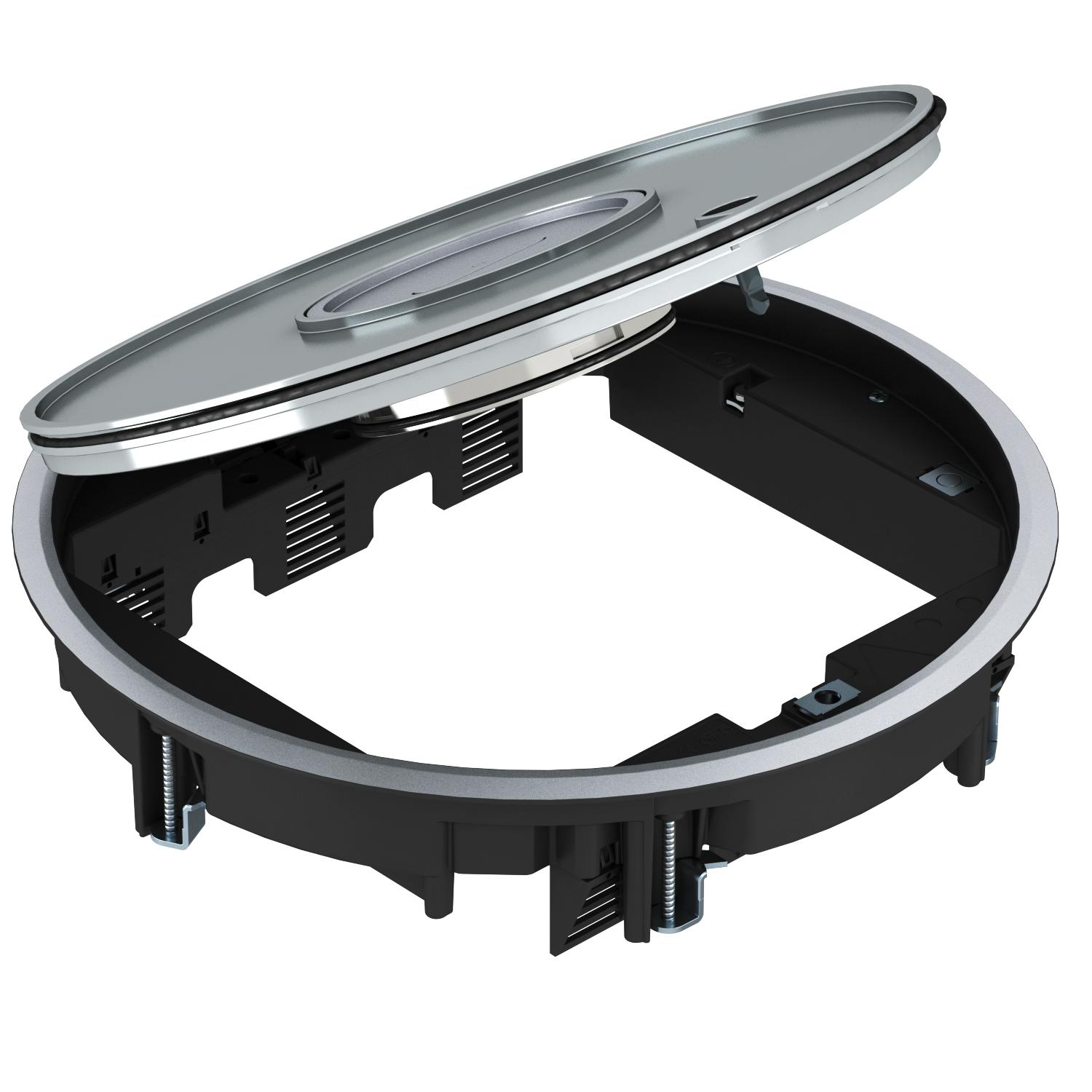 Adecuado para canalización bajo pavimento sí Adecuado para canalización cerrada a ras de pavimento sí Altura del piso mín. 80 mm Apropiado para canal bajo suelo sí Apropiado para instalación de suelo técnico sí Apropiado para limpieza con agua sí Apropiado para montaje en suelo hueco / técnico sí Autorizaciones VDE Carga vertical, superficie grande hasta 10.000 N Carga vertical, superficie pequeña hasta 3.000 N Con entalladura para revestimiento de suelo sí Cuidados del suelo húmedo Diámetro de montaje 305 Diámetro exterior 325 mm Dimensión Ø325x73 Espesor del revestimiento del suelo 3 mm Grado de protección (IP) mientras se está utilizando IP20 Grado de protección (IP) si no se está utilizando IP45 Grado de protección código IK IK10 Huella de CO2 (GWP) Cradle-to-Gate 4,2742 kg CO2e / 1 Unidad Marco para revestimiento del suelo sí Material Aluminio fundido Mecanismo de apertura Pasador giratorio Modelo de salida de cable Tubo Modelo del marco marco protector de moqueta , Modelo para carga pesada sí Número de cajas portamecanismos 3 Número de dispositivos instalables 12 Posibilidad de instalar una junta sí Rango de sujeción D máx. 73 mm Rango de sujeción D mín. 4 mm Tamaño nominal para unidades portamecanismos R9 Tipo de sistema de montaje UT4 Versión redondo - Todos los tipos