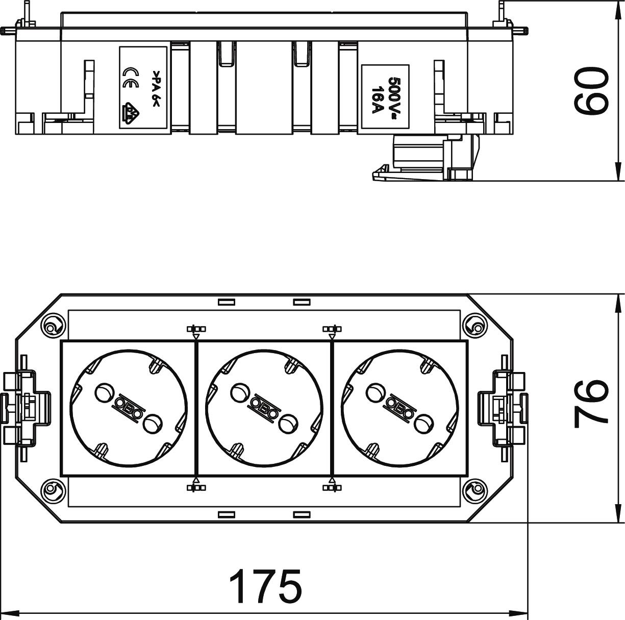 Descripción de productoEl soporte universal UTC3 listo para conectar tiene tres tomas de corriente con toma de tierra 33º preinstaladas con 16 A. Adecuado para los cables de conexión VL y para su uso en las cajas portamecanismos del tamaño nominal 2, 4, R4, 6 y R7.