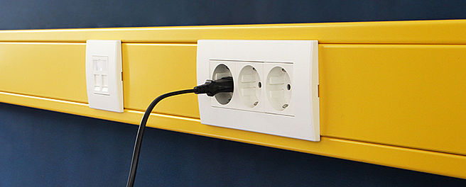 How can rooms be supplied with electricity and data? OBO Bettermann says in three dimensions. On the floor, on the ceiling and on the wall. But they are functional and aesthetic. This is what our products stand for.